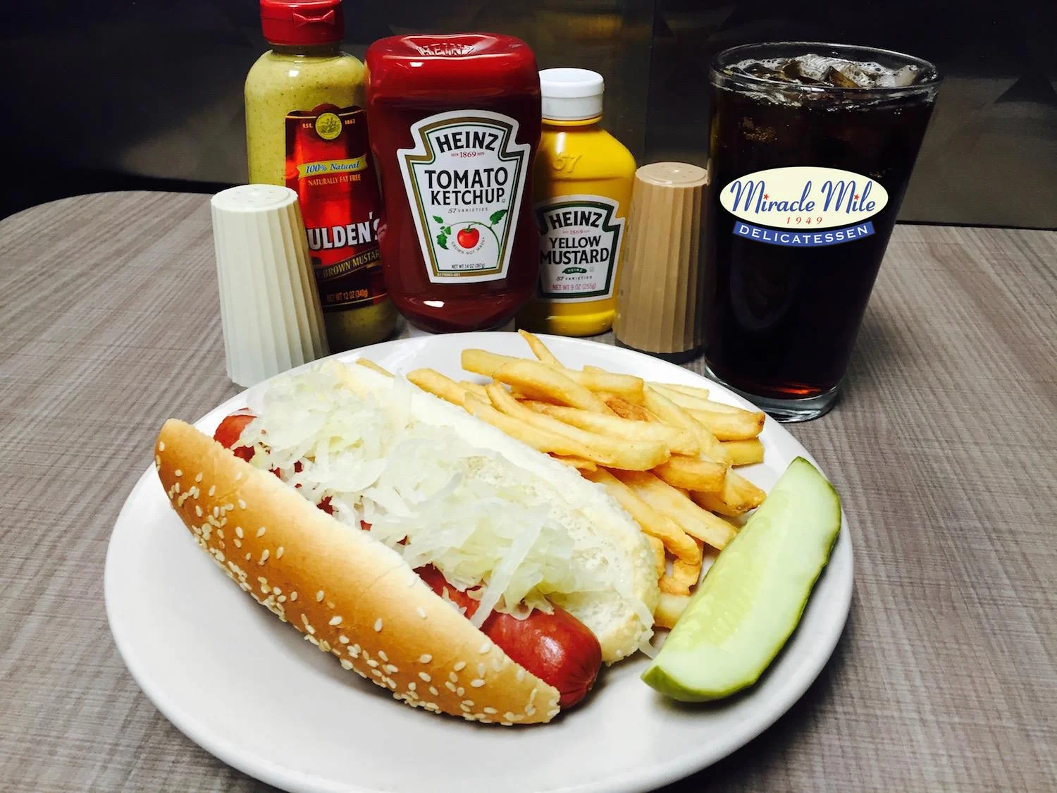 July is National Hot Dog Month and To celebrate, locally owned Miracle Mile Deli is offering up a Dog Days of Summer special. For just $5, you can purchase a Hebrew National Hot Dog, French Fries and a Small Soft Drink from Monday July 18th through Sunday, July 24th. This special deal will be available for lunch and dinner (but not before 11 a.m. on Saturday and Sunday). All you have to do is ask for the “hot dog special”.