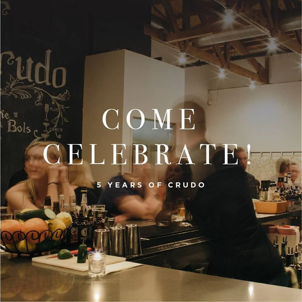 All week long on Tuesday, April 11 - Saturday, April 15, 2017, Crudo and Bar Crudo are celebrating their 5th Anniversary with a special menu featuring fan favorites from the past half-decade. Led by Chef/Co-Owner, Cullen Campbell, and Mixologist/Co-owner, Micah Olson, this award-winning restaurant and cocktail lounge will take guests on a tasty tour of Crudo's greatest hits with a 'best of' menu featuring the 5 top-selling dishes (and cocktails) over the past 5 years. Offered nightly from 5 to 10 pm, this is your chance to sip and savor fan favorites, as vetted by fellow Crudo aficionados.