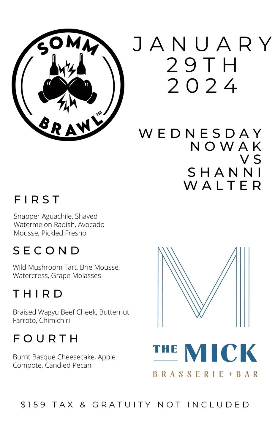 Join The Mick as they host Somm Brawl, where eight talented sommeliers will compete in a bracketed match-up. The somms will pair their expert choice of wines with a four-course tasting menu curated by executive chef Brent Menke, and guests will vote for their favorite. The last somm standing wins the SOMM BRAWL title belt and bragging rights. $159 includes 4 courses and 8 tastings. Tax and Gratuity not included. For the full line-up, visit THIS LINK. To reserve your seat, click RESERVATIONS