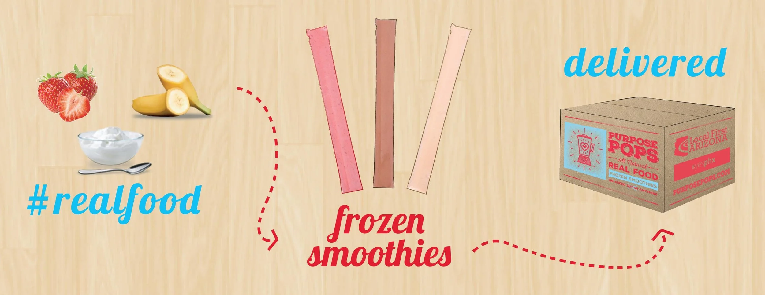 Purpose Pops mission is to provide back to basics and common sense food. Food that is made with ingredients you can pronounce and understand. Purpose Pops does this by taking homemade smoothies and freezing them into ready-to-eat pops that are great for the on-the-go lifestyle.