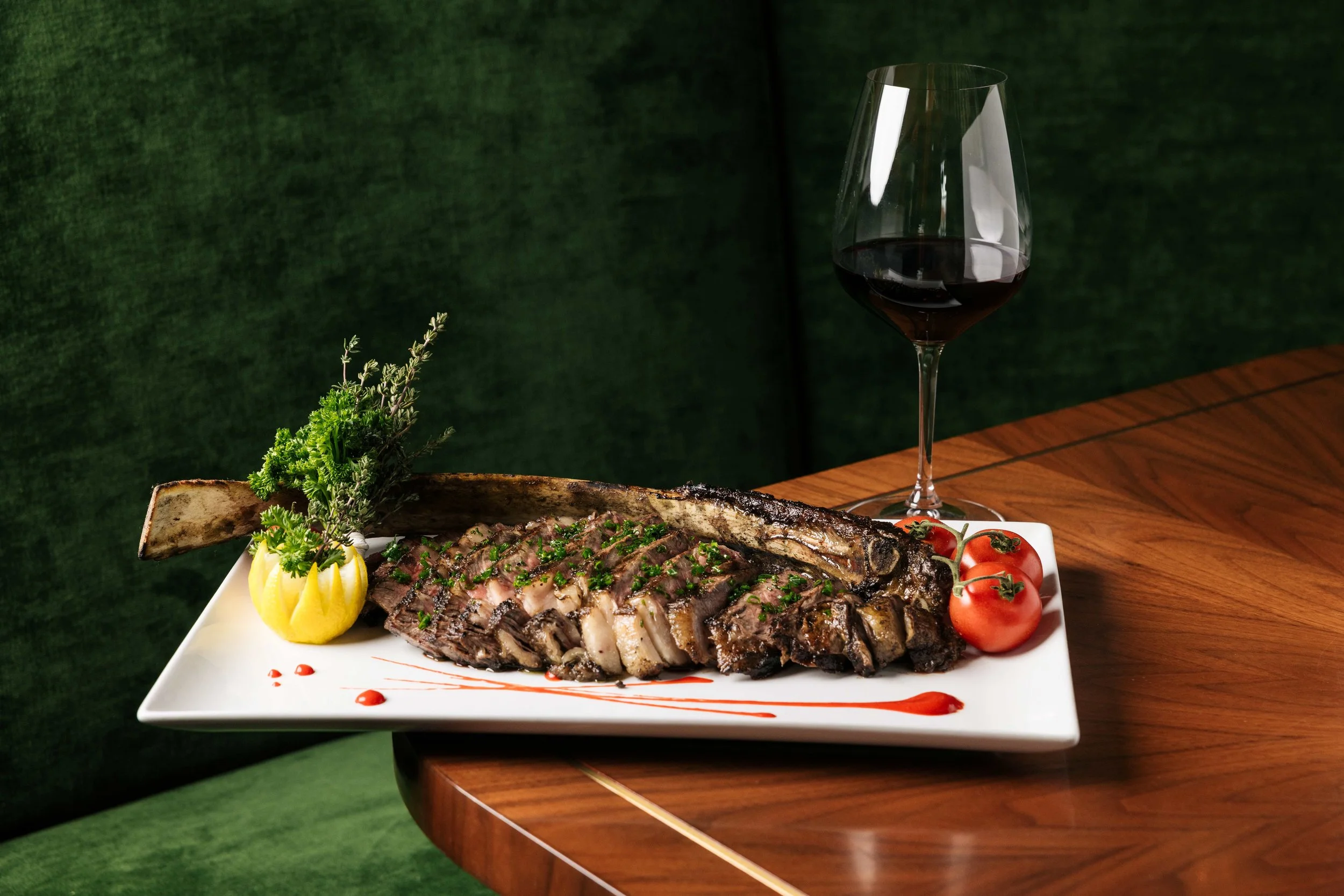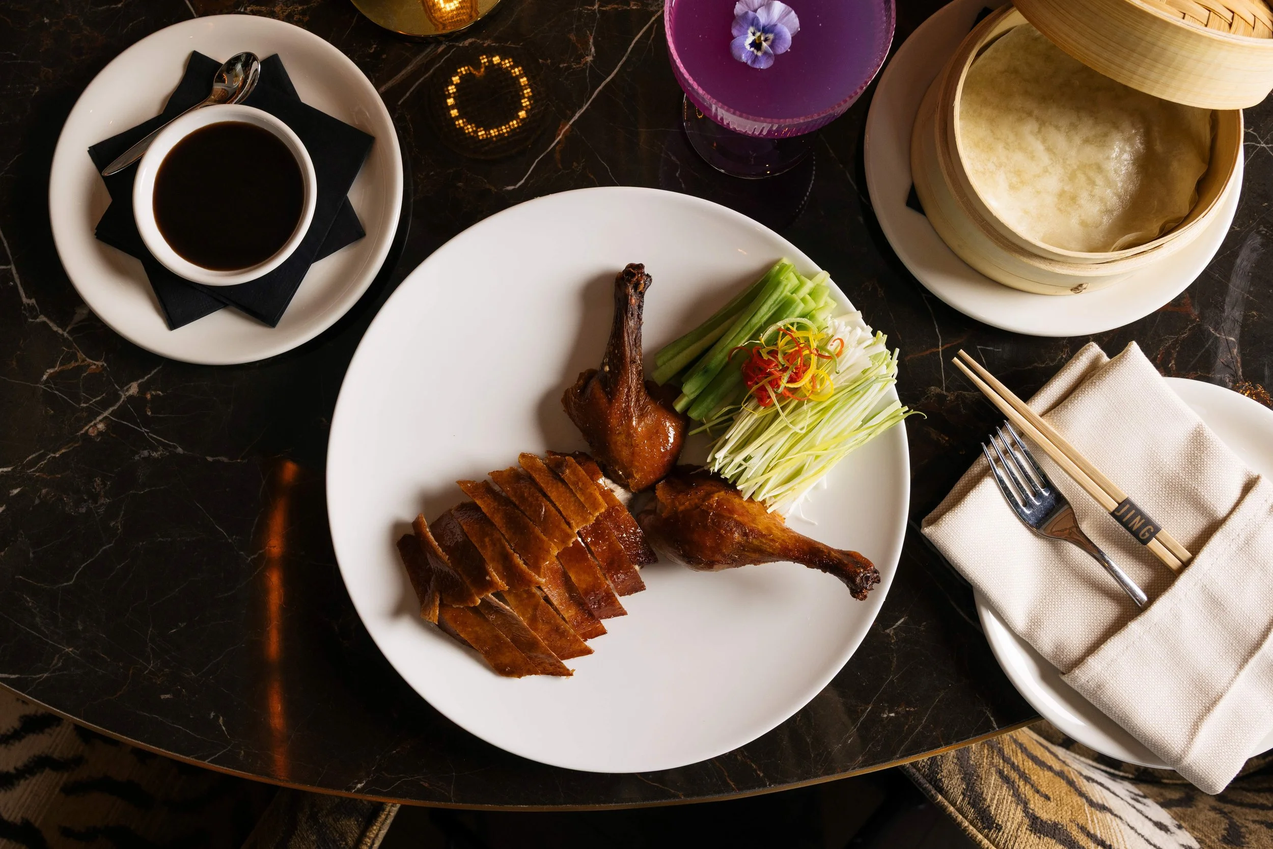 The kitchen is anchored by a rare Josper charcoal oven and grill imported from Spain – used by only a handful of restaurants in the Valley and the first JING location to feature one. Fueled by a unique mixture of Binchotan charcoal as well as mesquite, pecan, and fresh oak woods that burn at extreme heat, the Josper delivers depth, intensity, and unmistakable flavor. Highlights include the Longbone Tomahawk, a show-stopping, live-fire grill steak with deep char; Colorado Lamb, prepared over intense charcoal heat to highlight its natural richness and succulence, and the Josper Roasted Shellfish Platter, a presentation of Alaskan King Crab, Skull Island tiger prawns, Boston middle neck clams, Prince Edward Island mussels, half a Maine lobster, and Kusshi oysters. The full dinner menu can be found here. A separate vegetarian and vegan menu (found here) is also available, featuring thoughtfully composed plant-based selections.